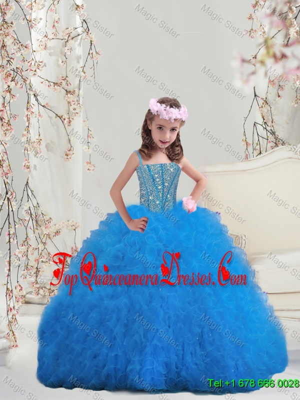 Perfect Spaghetti Teal Mini Quinceanera Dresses with Beading and Ruffles