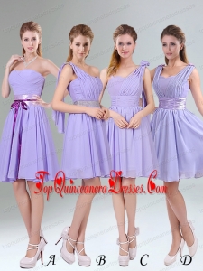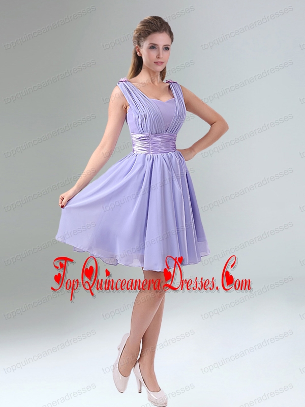 Perfect Straps Lavender Ruched Mini Length Dama Dress with Waistband