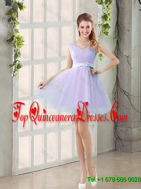 Perfect V Neck Strapless Belt Short Dama Dresses