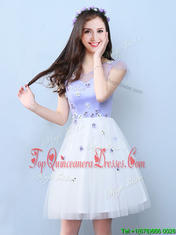 Perfect White V-neck Neckline Appliques Court Dresses for Sweet 16 Cap Sleeves Lace Up