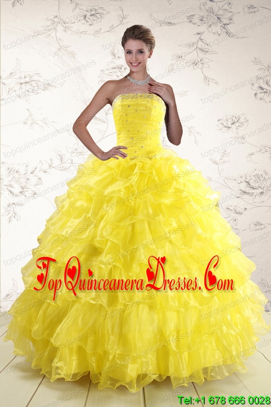 Perfect Yellow Quinceanera Dresses with Beading and Ruffles