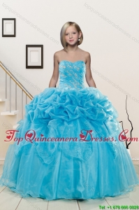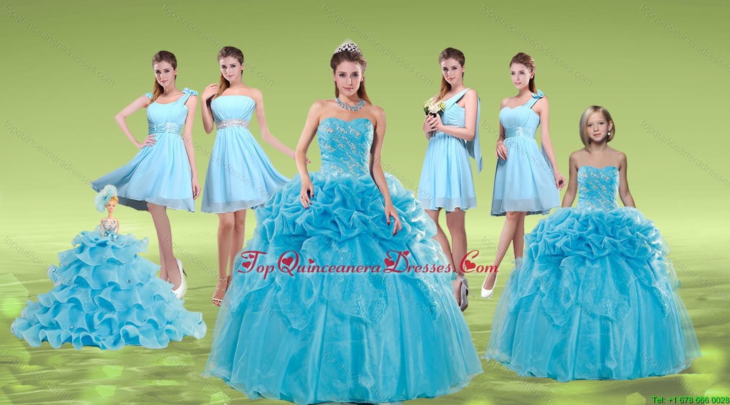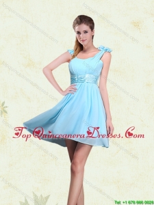 Pick Ups and Embriodery Baby Blue Quinceanera Dress and Ruching Short Dama Dresses and Embroidery Baby Blue Little Girl Dress