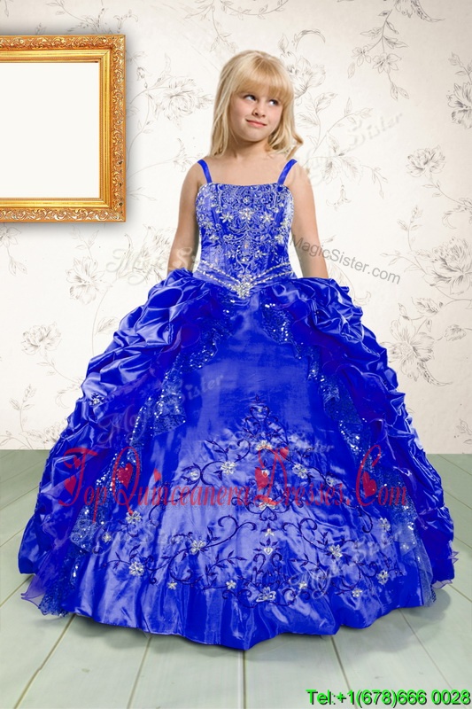 Pick Ups Ball Gowns Little Girl Pageant Dress Royal Blue Spaghetti Straps Satin Sleeveless Floor Length Lace Up