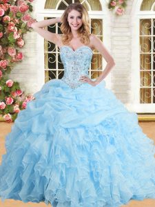 Pick Ups Ball Gowns Quinceanera Dress Baby Blue Sweetheart Tulle Sleeveless Floor Length Lace Up