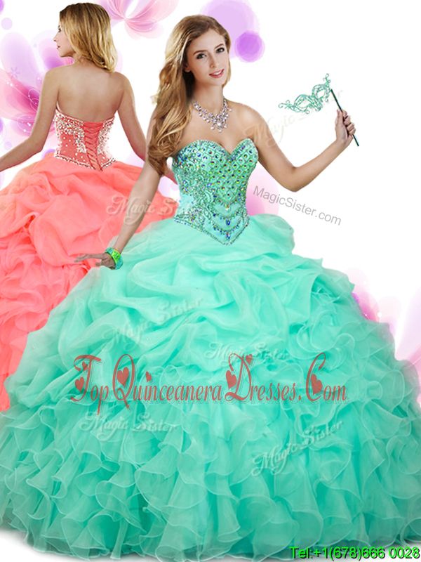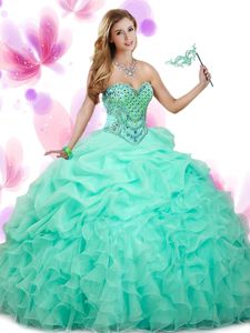Pick Ups Floor Length Ball Gowns Sleeveless Apple Green Quinceanera Gown Lace Up