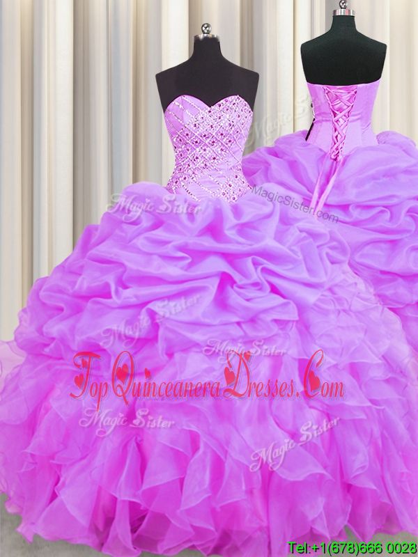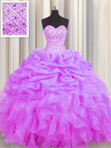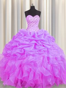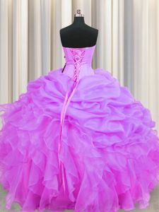 Pick Ups Lilac Sleeveless Organza Lace Up Quinceanera Dress for Military Ball and Sweet 16 and Quinceanera