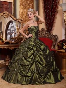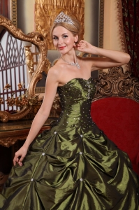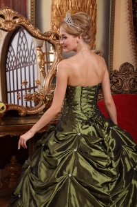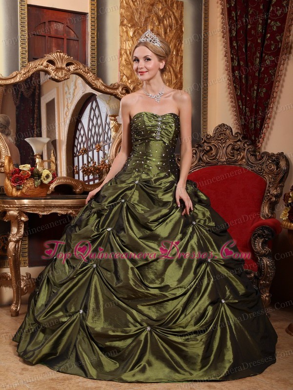 Pick-ups Olive Green Quinceanera Ball Gowns Dresses Strapless