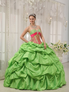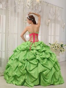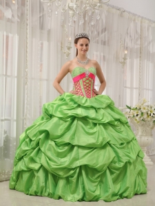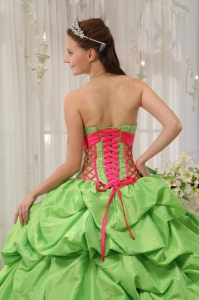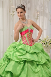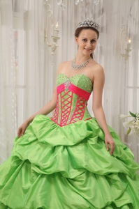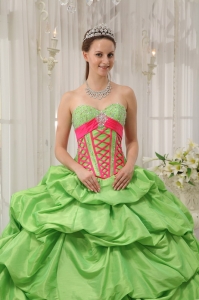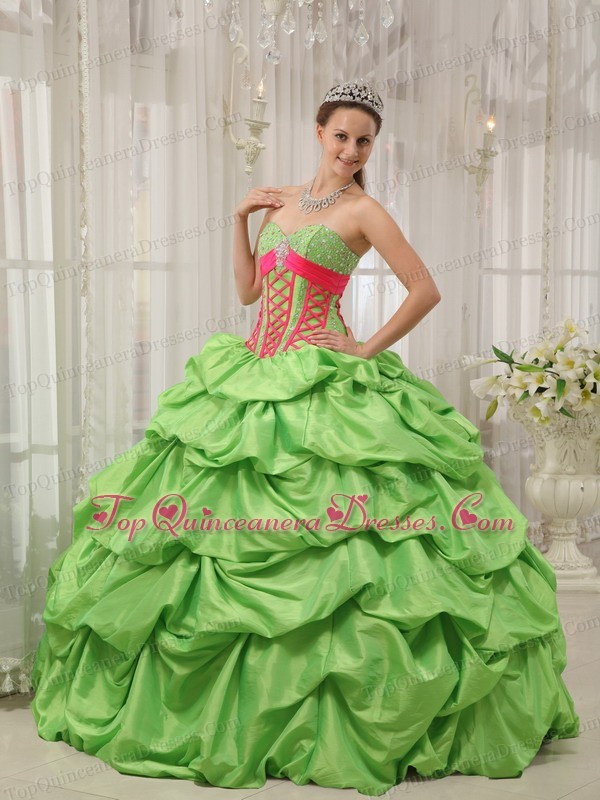 Pick-ups Quinceanera Dress Beading Spring Green and Red