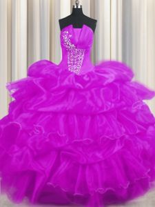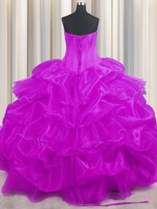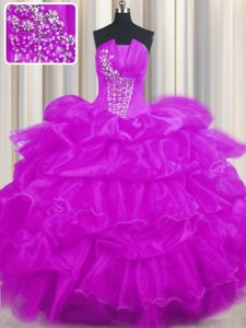 Pick Ups Ruffled Floor Length Purple Sweet 16 Quinceanera Dress Strapless Sleeveless Lace Up