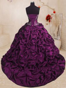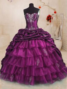 Pick Ups With Train Purple Quinceanera Gown Sweetheart Sleeveless Sweep Train Lace Up