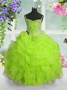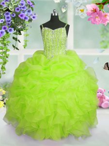 Pick Ups Yellow Green Sleeveless Organza Lace Up Little Girl Pageant Dress for Party and Wedding Party