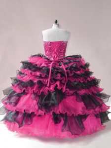 Pink And Black Sleeveless Beading and Ruffled Layers 15 Quinceanera Dress