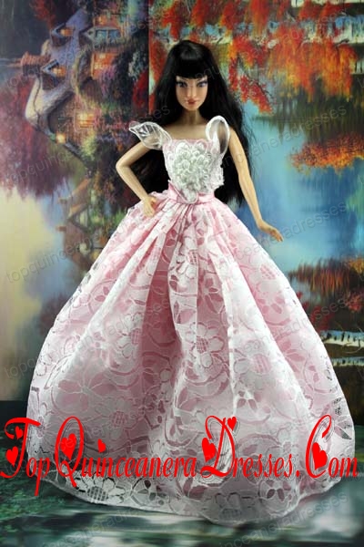 Pink and White Lace Over Skirt To Barbie Doll Dress