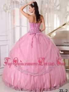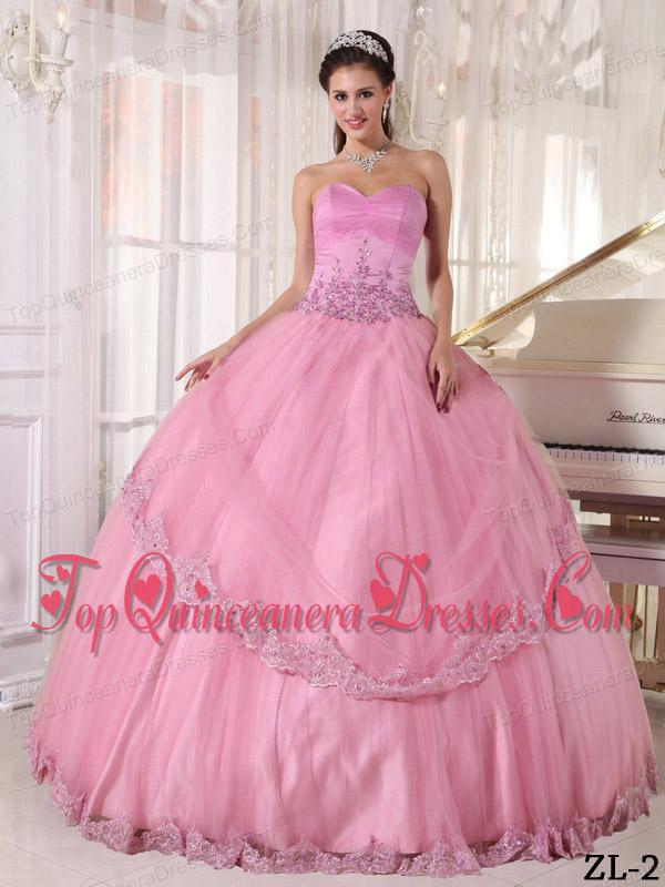Pink Ball Gown Sweetheart Floor-length Taffeta and Tulle Appliques Quinceanera Dress