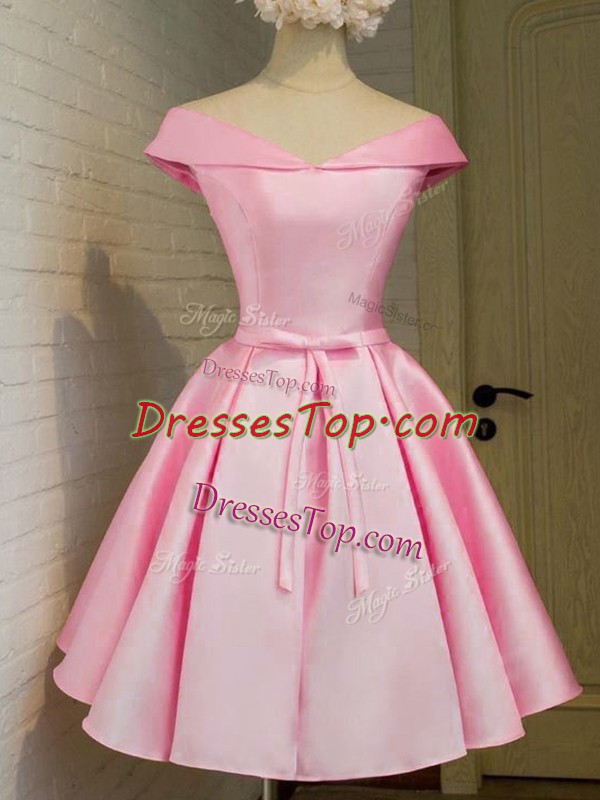 Pink Cap Sleeves Belt Knee Length Court Dresses for Sweet 16
