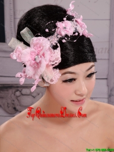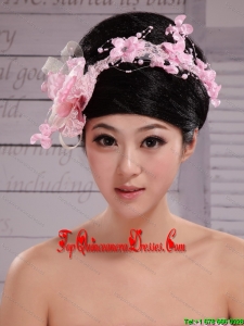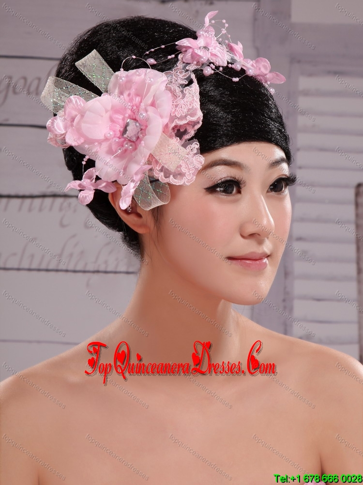 Pink Chiffon Bud Silk Pearls Net Flowers For Wedding