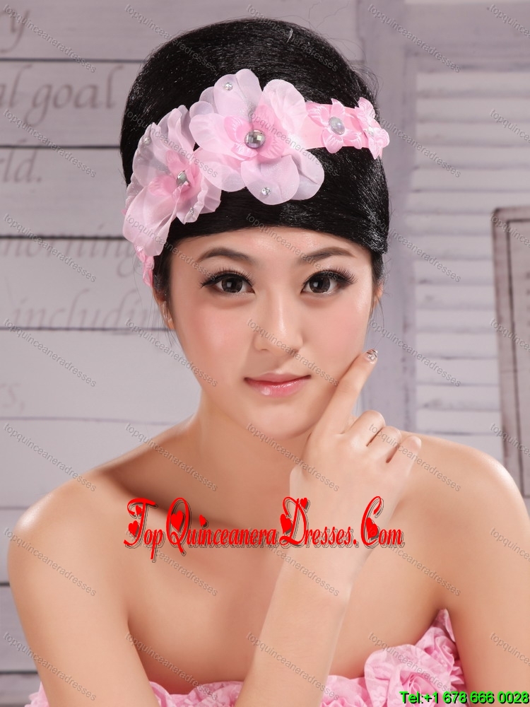 Pink Chiffon Hand Made Flowers and Beading For Headpiece