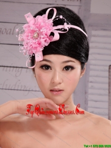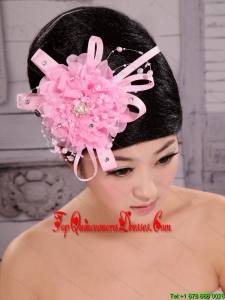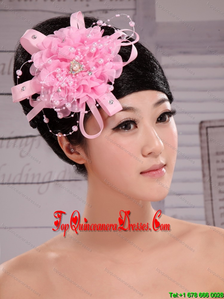 Pink Chiffon Ribbon Big Flowers With Pearls For Wedding