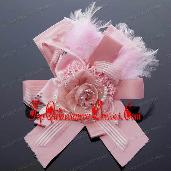 Pink Rhinestone Feather Hair Ornament for Imitation Pearls
