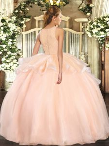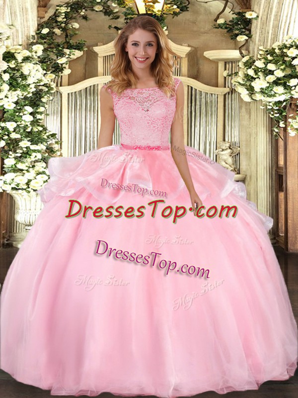 Pink Scoop Neckline Lace Quinceanera Dress Sleeveless Clasp Handle