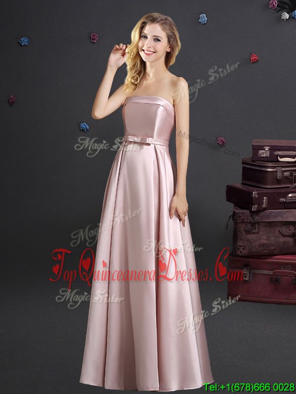 Pink Sleeveless Bowknot Floor Length Vestidos de Damas