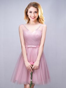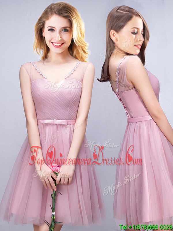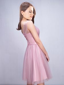 Pink Sleeveless Tulle Lace Up Quinceanera Dama Dress for Prom and Party and Wedding Party