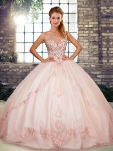 Pink Sleeveless Tulle Lace Up Quinceanera Gowns for Military Ball and Sweet 16 and Quinceanera