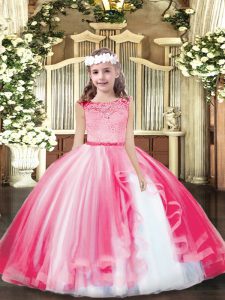 Pink Zipper Scoop Lace Little Girl Pageant Dress Tulle Sleeveless