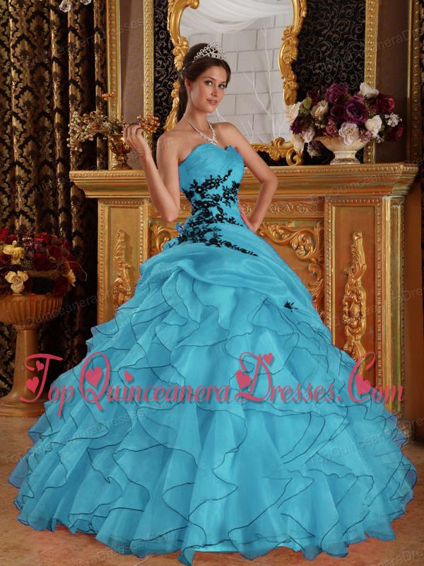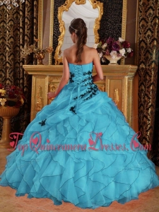 Popular Aqua Blue Ball Gown Sweetheart Floor-length Organza Appliques Quinceanera Dress