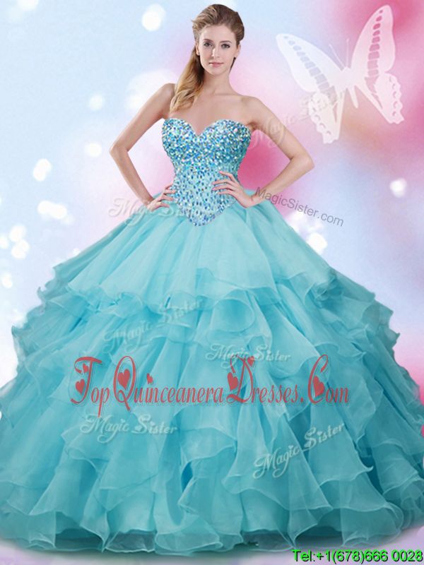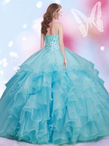 Popular Aqua Blue Sweetheart Lace Up Beading and Ruffles Quinceanera Dress Sleeveless