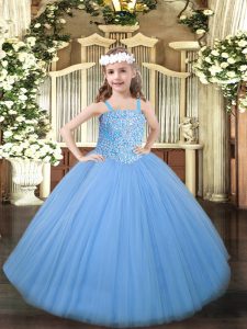 Popular Baby Blue Lace Up Little Girls Pageant Dress Wholesale Beading Sleeveless Floor Length