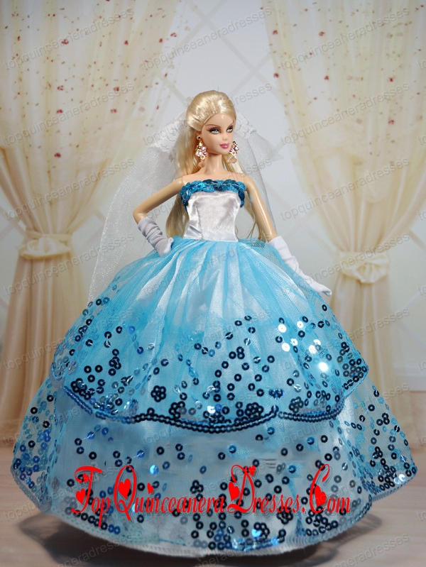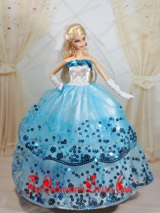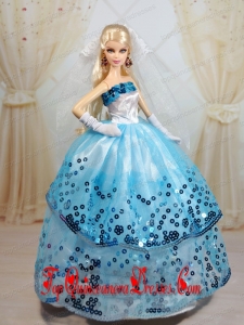 Popular Ball Gown Party Clothes White and Blue Barbie Doll Dress