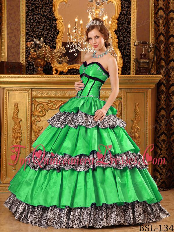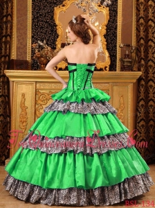 Popular Ball Gown Sweetheart Floor-length Taffeta Ruffles Green Cheap Quinceanera Dress