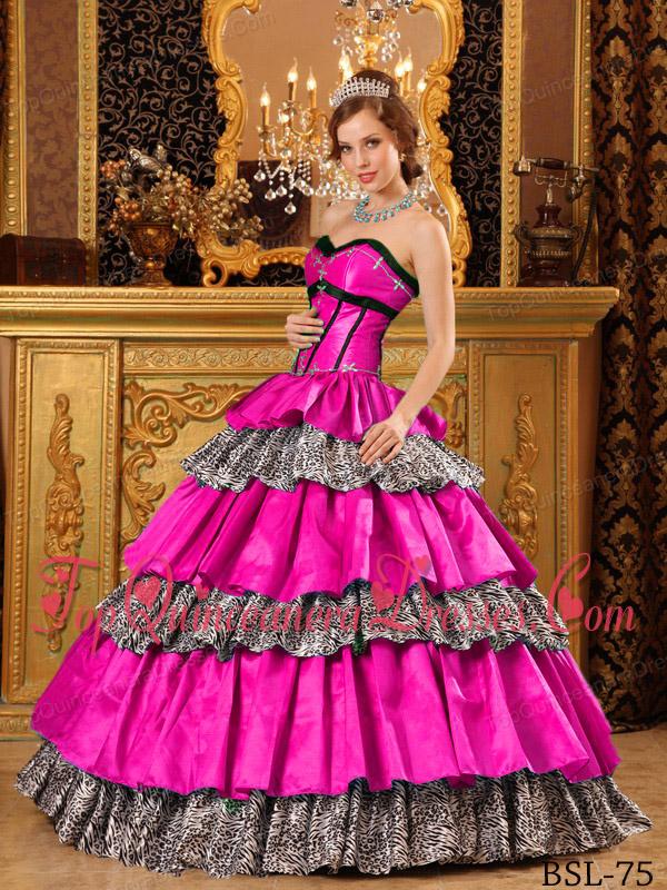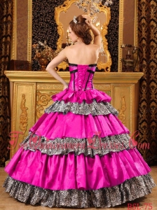 Popular Ball Gown Sweetheart Floor-length Taffeta Ruffles Hot Pink Quinceanera Dress