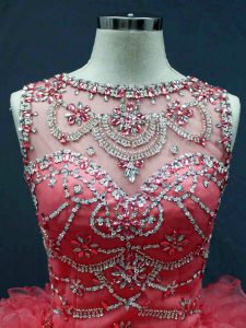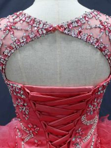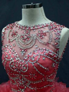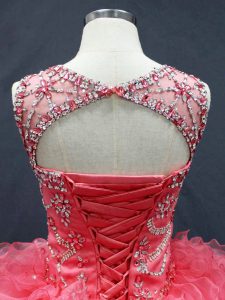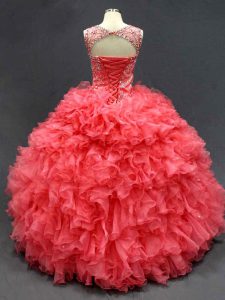 Popular Ball Gowns Quinceanera Dresses Coral Red Scoop Organza Sleeveless Floor Length Lace Up