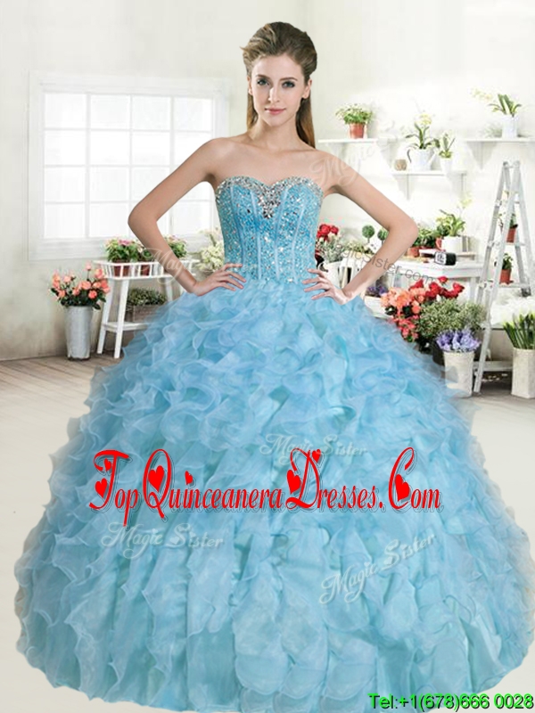 Popular Beaded and Ruffled Baby Blue Quinceanera Dress in Organza