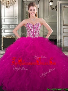 Popular Beaded and Ruffled Big Puffy Sweet 16 Dress in Fuchsia