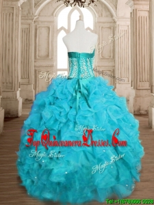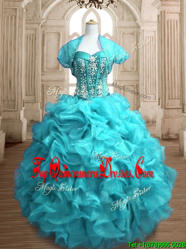 Popular Beaded and Ruffled Organza Quinceanera Dress in Teal