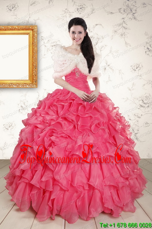 Popular Beading and Ruffles 2015 Hot Pink Quinceanera Dresses with Strapless