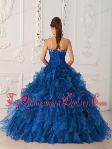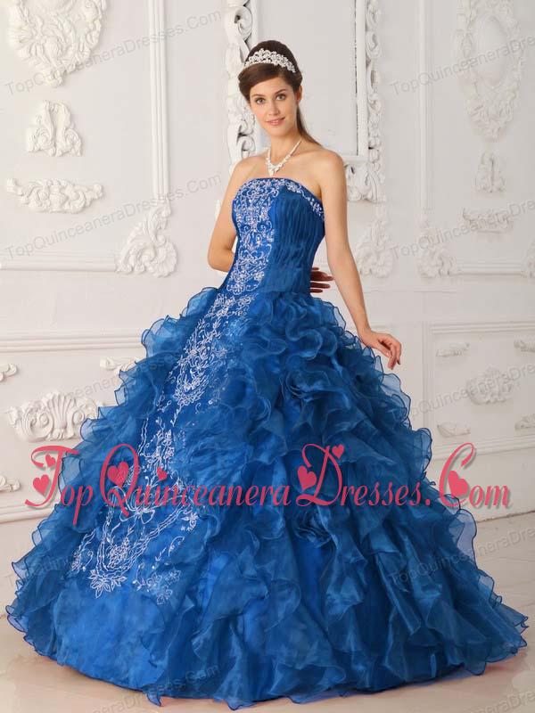 Popular Blue Ball Gown Strapless Floor-length Satin and Organza Embroidery Quinceanera Dress