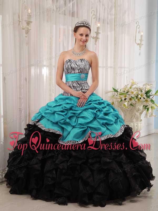 Popular Brand New Turquoise and Black Ball Gown Sweetheart Floor-length Quinceanera Dress