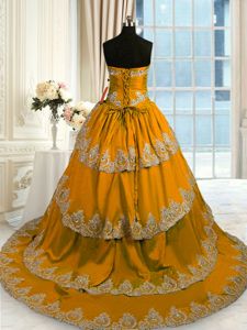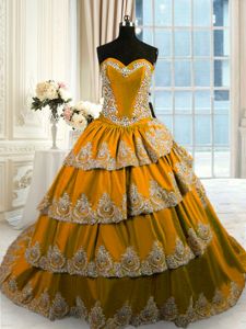 Popular Brown Lace Up Sweetheart Beading and Appliques and Ruffled Layers Sweet 16 Dresses Taffeta Sleeveless Court Train