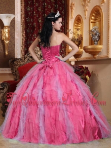 Popular Coral Red Ball Gown Sweetheart Floor-length Tulle Beading Quinceanera Dress