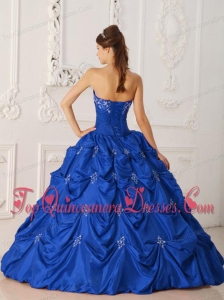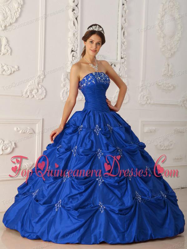 Popular Dark Blue Ball Gown Strapless Floor-length Taffeta Appliques and Beading Quinceanera Dress