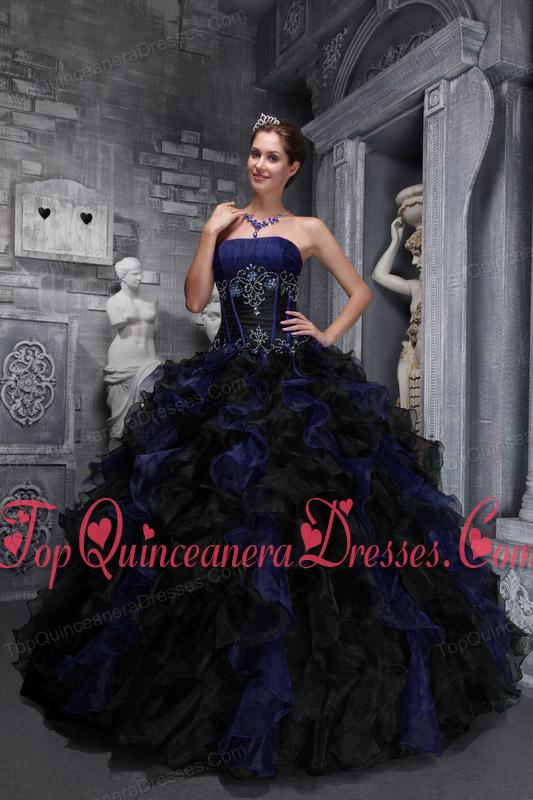 Popular Exclusive Strapless Taffeta and Organza Appliques and Ruffles Multi-color Quinceanera Dress