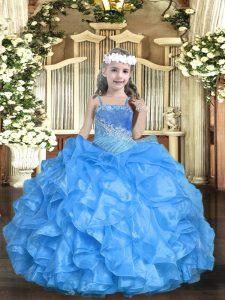 Popular Floor Length Baby Blue Little Girl Pageant Dress Straps Sleeveless Lace Up