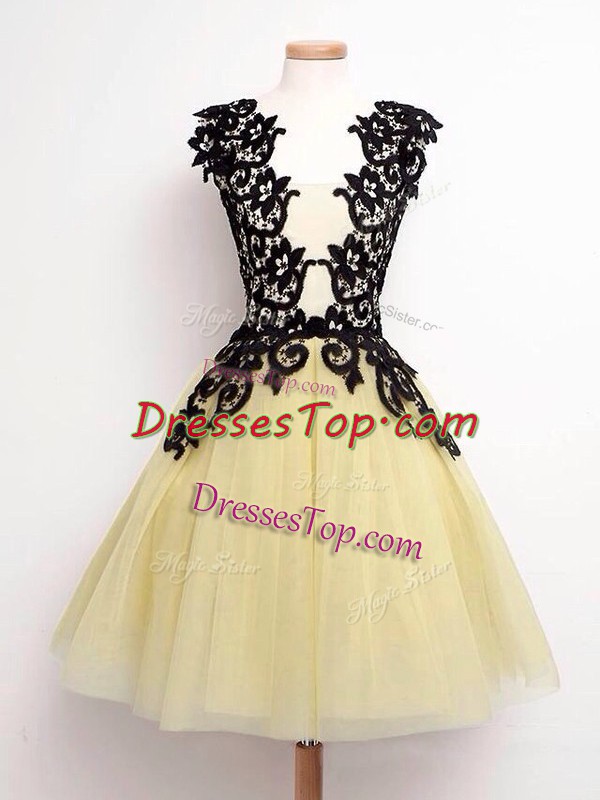 Popular Gold Sleeveless Tulle Lace Up Dama Dress for Prom and Party and Wedding Party