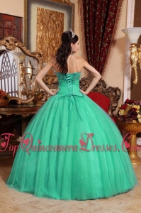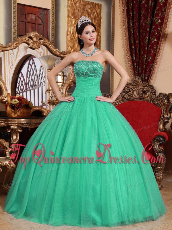 Popular Green Ball Gown Strapless Floor-length Tulle Embroidery with Beading Quinceanera Dress