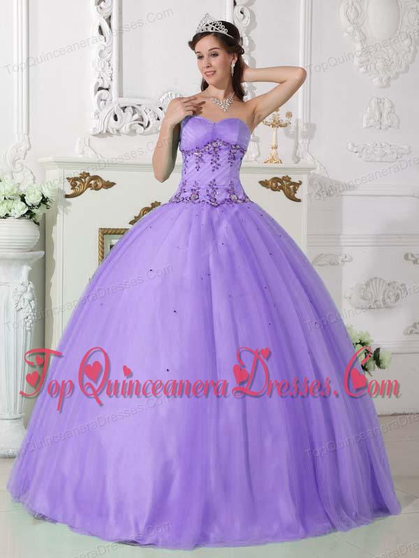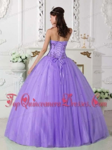 Popular Lilac Ball Gown Sweetheart Floor-length Tulle and Taffeta Beading Quinceanera Dress