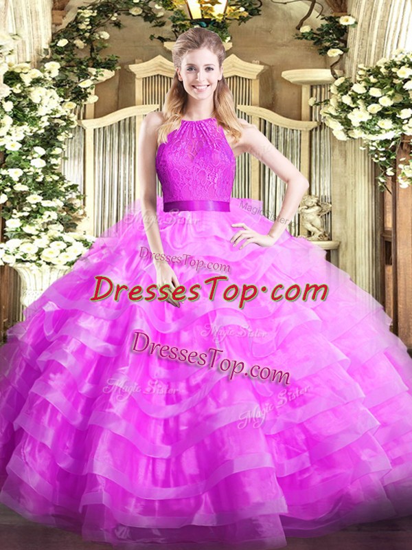 Popular Organza Sleeveless Floor Length Quince Ball Gowns and Ruffled Layers